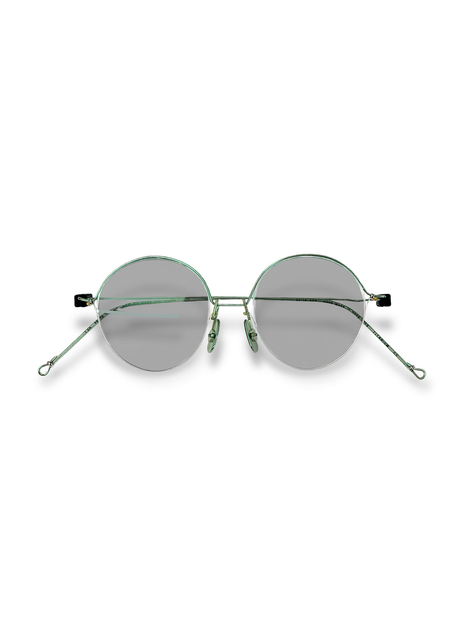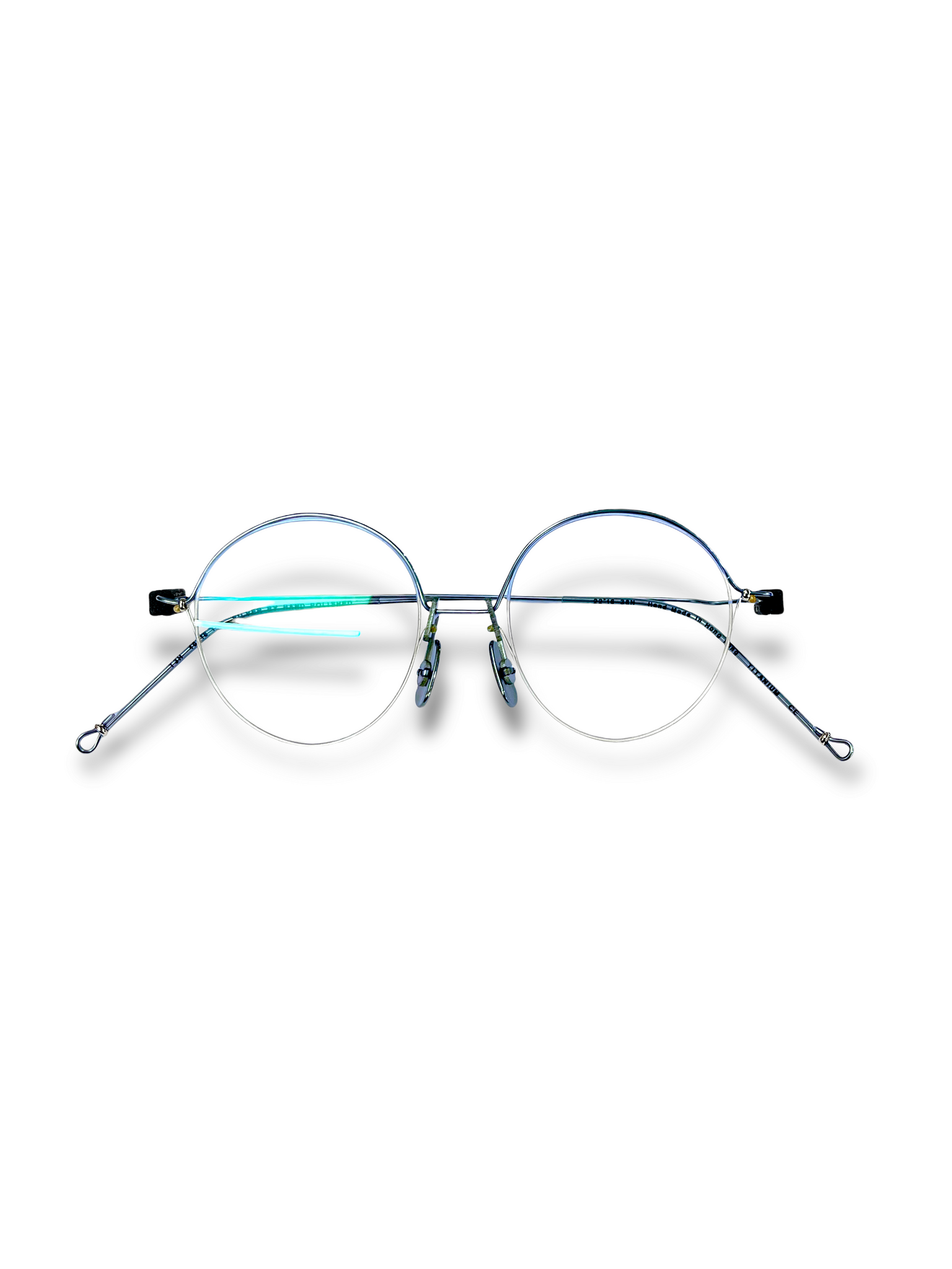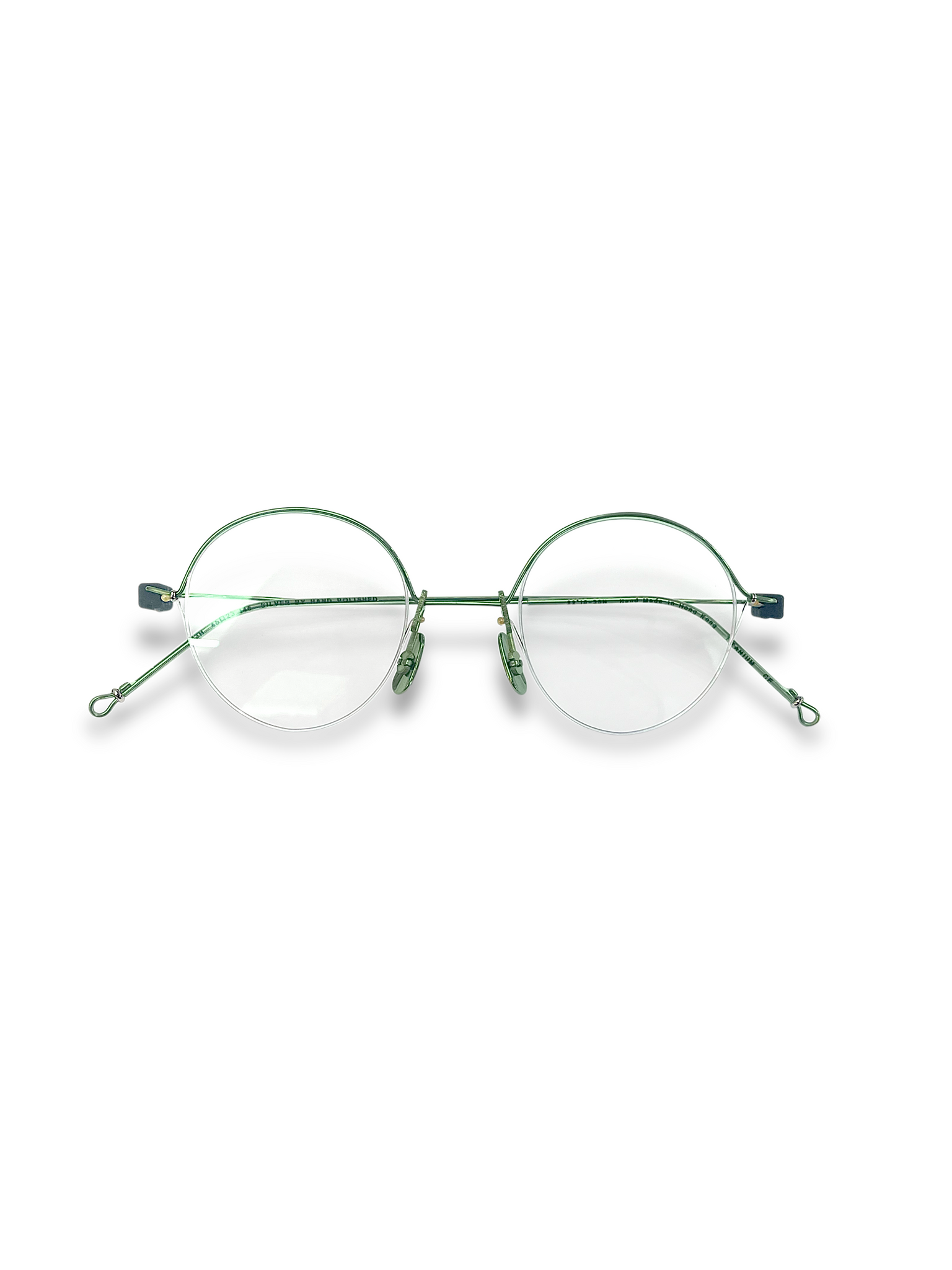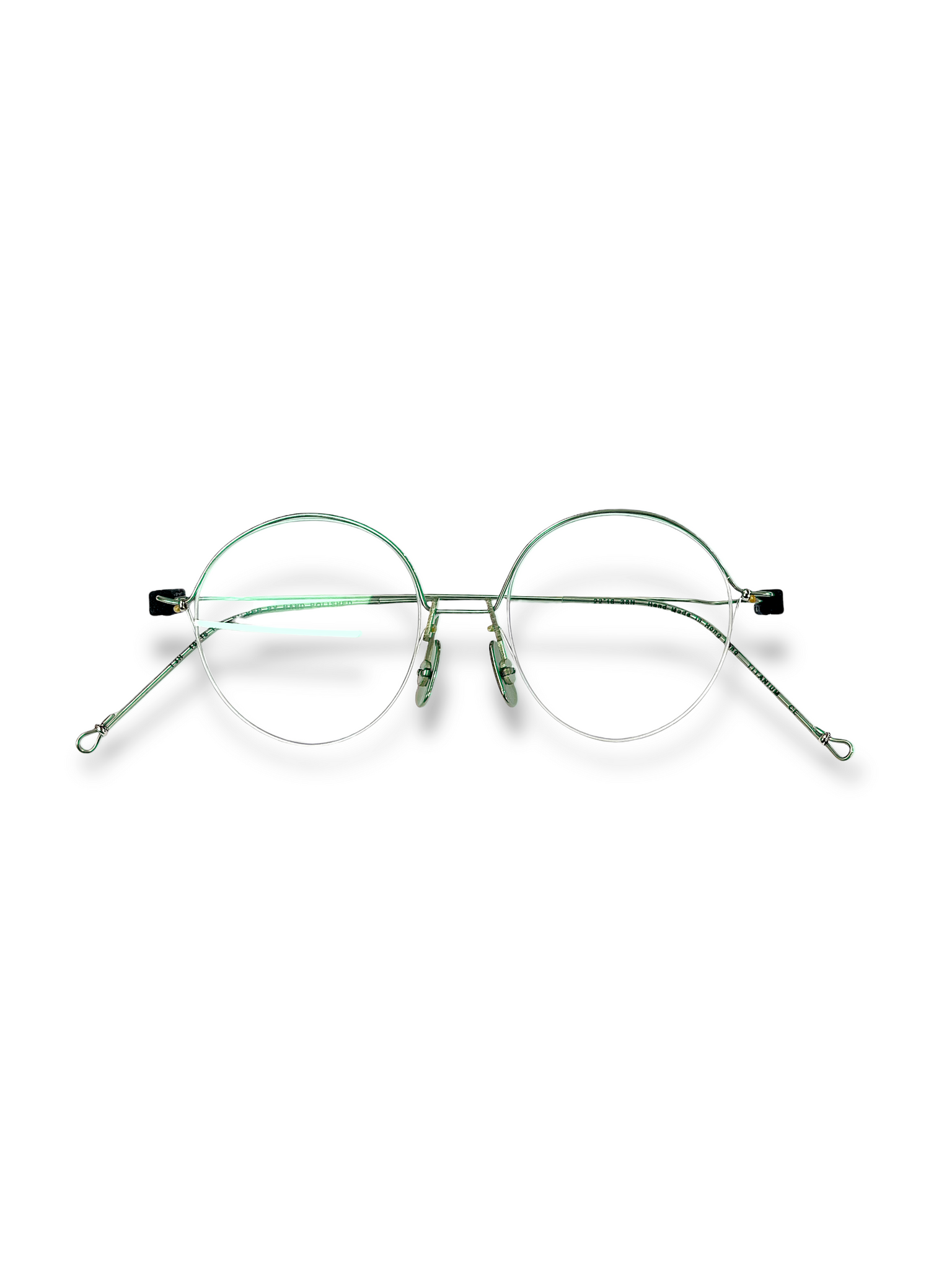 Tシリーズの「T」はチタニウム(Titanium)を意味します。デザインはネジフリー、電気めっきフリー、ニッケルフリー、溶接フリーです。素材はチタニウム。重量は合金より40%軽量です。全ての眼鏡は香港で手作りされています。